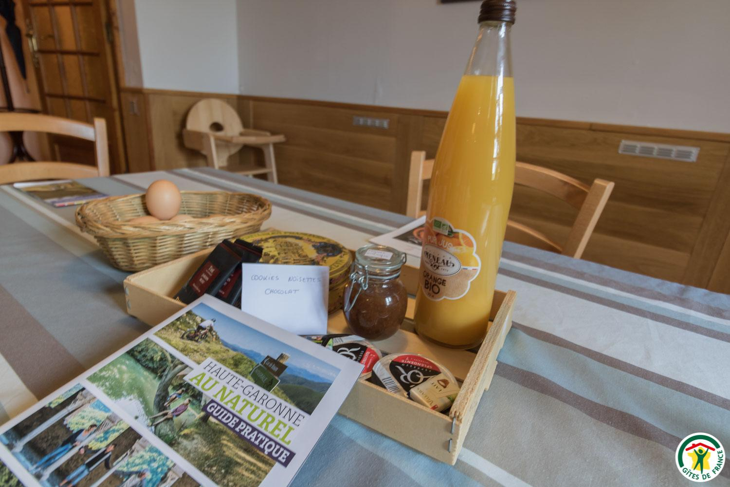 Location de vacances pour 4 personnes. Ce gîte au fond d'un vallon, cerné de champs, vous attend pour un séjour au vert (de nombreux arbres fruitiers sont présents sur l'hectare de terrain : cognassiers, cerisier...), calme et repos sont garantis. Vous pourrez pratiquer la voile, l'aviron, la pêche (étang privatif avec carpes) et vous balader tout autour en empruntant les chemins de randonnées (départ possible depuis le gîte). Ne pas oublier de saluer les deux ânes, Emon et Amandine ! Entre Toulouse (26km à l'est, à 20mns du métro Balma-Gramont), Albi (58km) et Carcassonne (100km) vous découvrirez la richesse de notre région. Château de Bonrepos-Riquet à 6km. Parc d'accrobranches de Natura Game à 12km tout comme un centre équestre. Forêt et golf de Buzet-sur-Tarn à 15km. Centre de remise en forme et bien-être de Calicéo à 20km. Au rez-de-chaussée : entrée dans le séjour (poêle à bois) avec un espace repas et une cuisine intégrée (réfrigérateur-congélateur, four électrique, micro-ondes, lave-vaisselle, cafetière à filtres et à dosettes, 4 feux gaz), buanderie (lave-linge séchant), descendre deux marches pour accéder à la salle d'eau avec WC. A l'étage : grand salon (canapé, TV écran plat, lecteur DVD, radio HI FI, lit d'appoint en 140cm), une grande chambre avec 1 lit 2 personnes en 160cm et 2 lits 1 personne en 90cm, séparés par un coin jeux pour les enfants. WC et lave mains. Chauffage central au fuel. Salon de jardin, transats, parasol et barbecue. Ce gîte est attenant à la maison des propriétaires (mais sans vis à vis). Équipement bébé (lit parapluie et chaise haute). Jardin en commun non clos. Animaux non admis. Internet. Possibilité de télétravail.