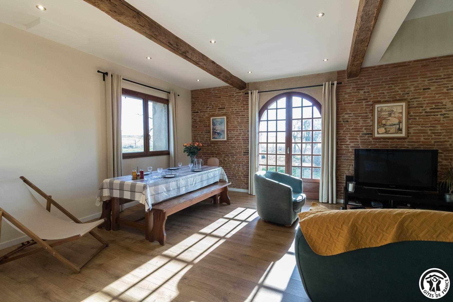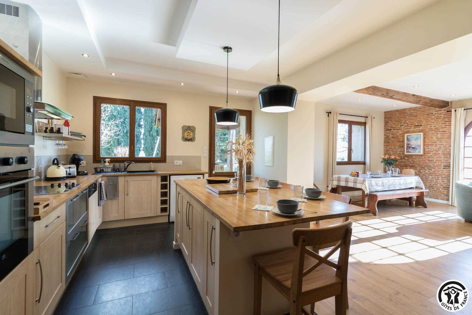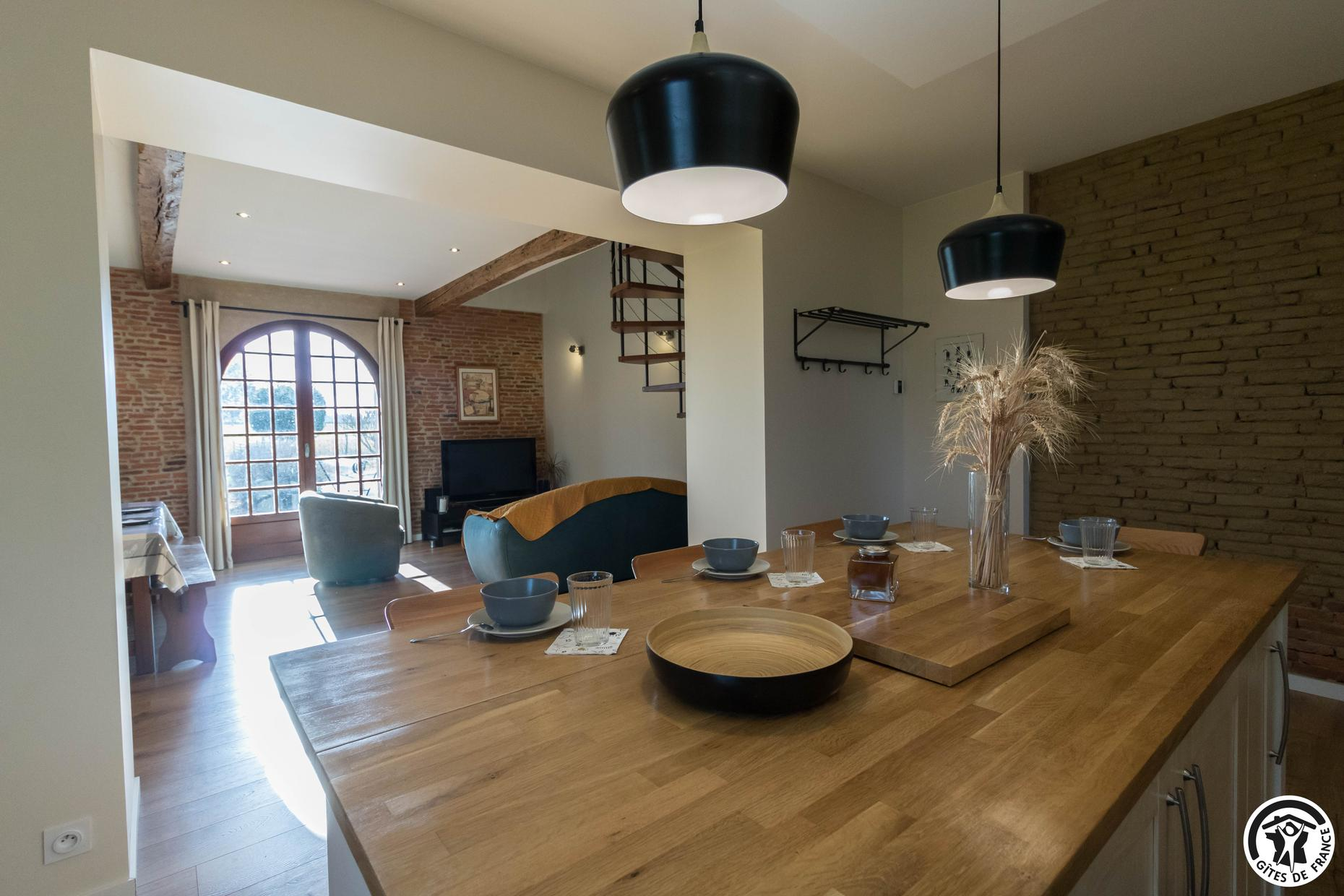 Mitoyen de la maison des propriétaires mais indépendant (terrasse et grand jardin privatif clos), le gîte Clorinde a tout pour vous séduire ! Lumineux, moderne, bien équipé, il a également su garder une trace de son passé avec ses murs de terre cuite ou crue. Une piscine clôturée commune sera l'atout décisif pour choisir ce lieu pour vos vacances d'été ! Jardin et terrasse privatifs clos. Après avoir visité Toulouse à 17km, vous pouvez vous relaxer aux centre de remise en forme de Calicéo à 12km ou choisir une journée lac détente à Caraman à 18km ! Château de Bonrepos-Riquet à 10km tout comme les commerces et restaurants. Natura Game à 13km. Lac du Laragou à 14km. Aux portes du département du Tarn : Lavaur à 24km, Gaillac à 56km, Albi à 70km et Cordes-sur-Ciel à 76km. Cette maison aménagée sur 2 niveaux avec 3 chambres et 4 lits : Au rez-de-chaussée : vaste pièce de séjour comportant une cuisine avec îlot central et coin-bar, et un espace séjour avec table à manger et salon. Une chambre (1 lit double en 140cm), salle d'eau/WC. A l'étage, accessible par un escalier en colimaçon : coin détente/lecture/jeux en mezzanine, 2 chambres mansardées (1 lit double en 140cm) (2 lits simples en 90cm), WC indépendant. Chauffage au sol en rez-de-chaussée (granules de bois) et convecteurs électriques à l'étage. Ouverture de la piscine de Mai à Septembre, horaires : 11h00 à 18h30.