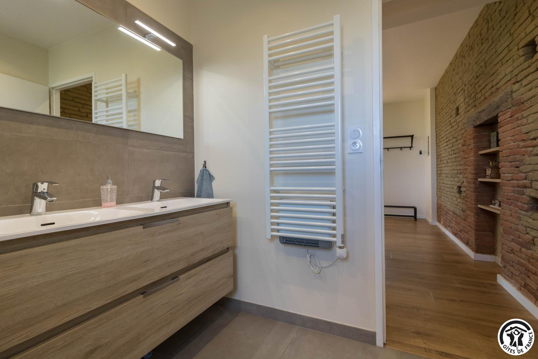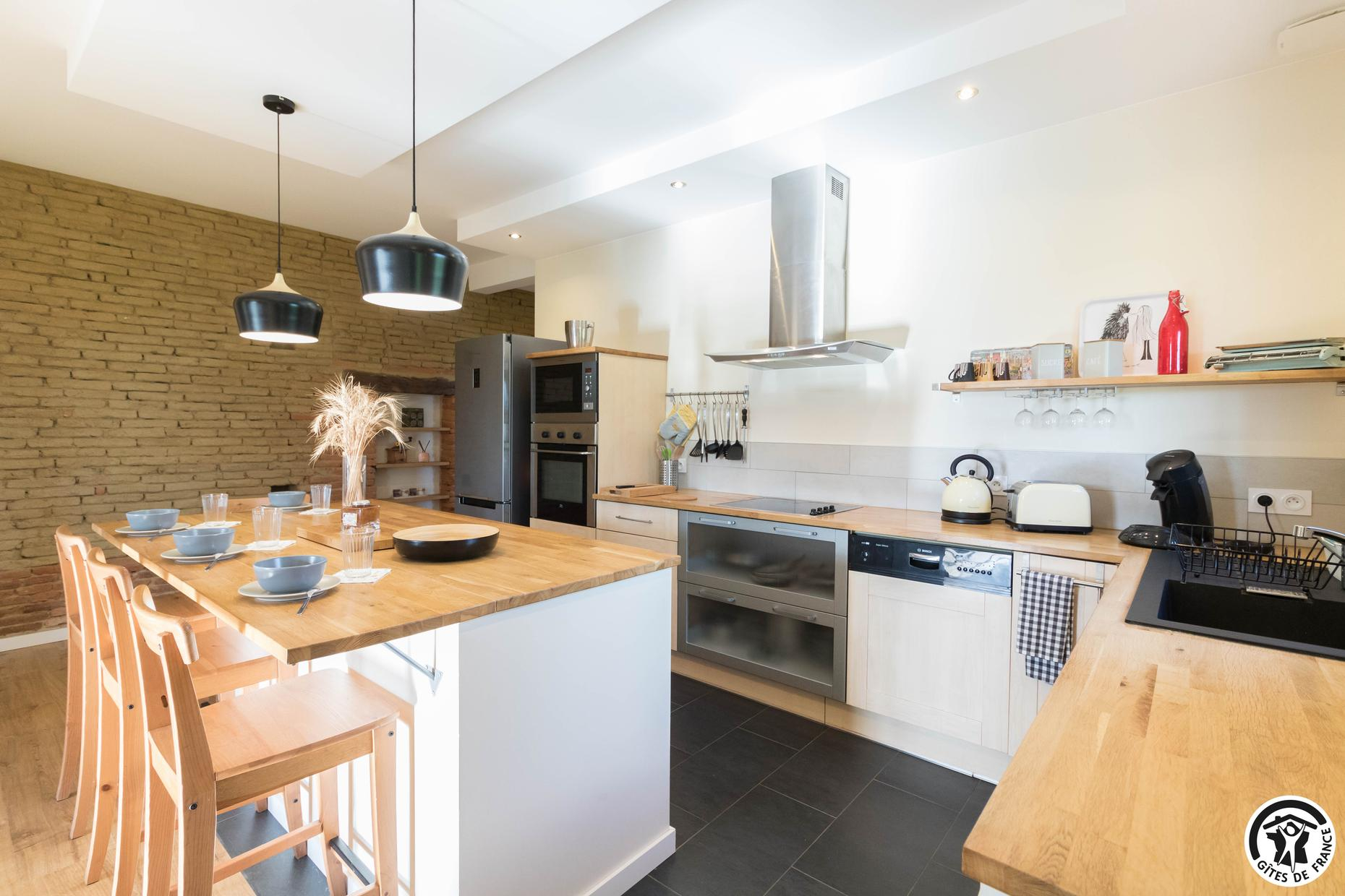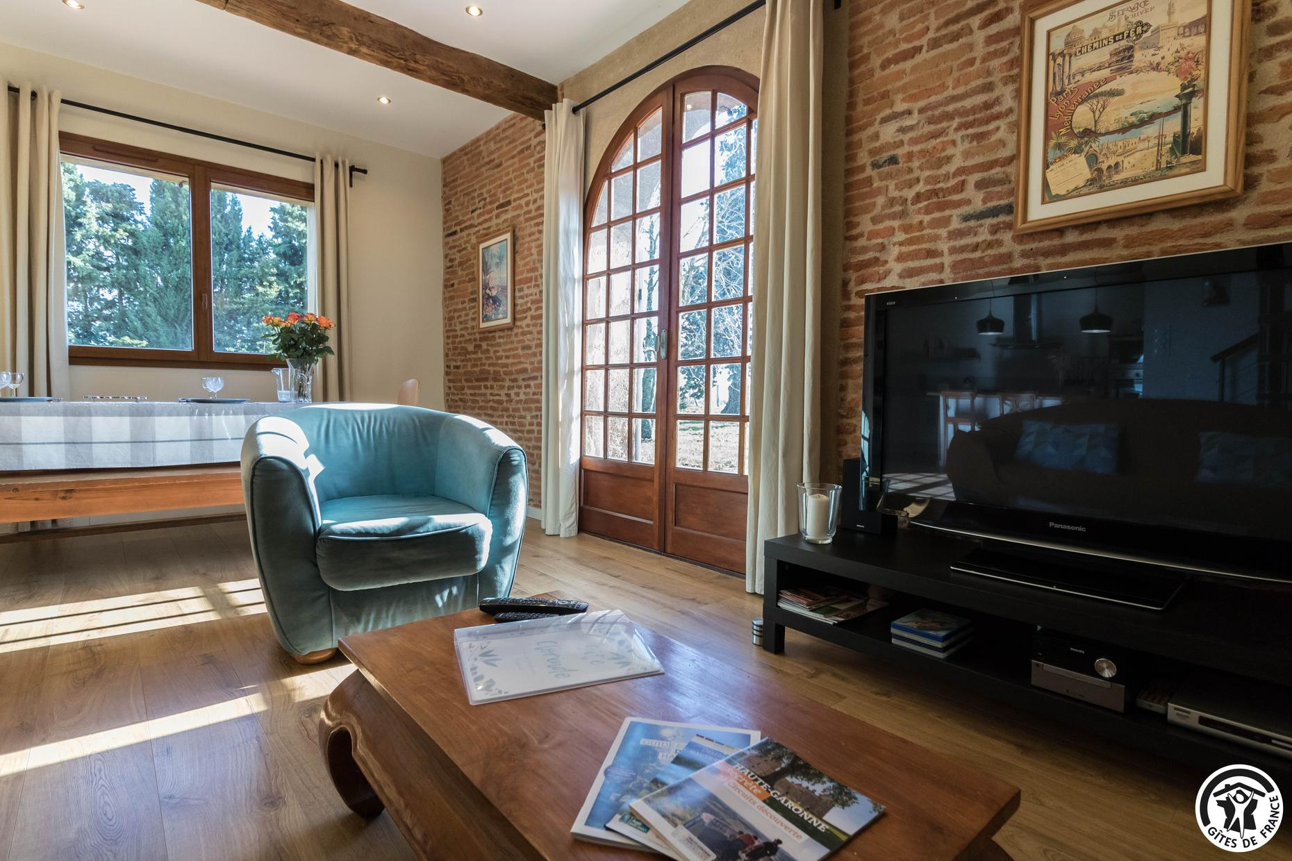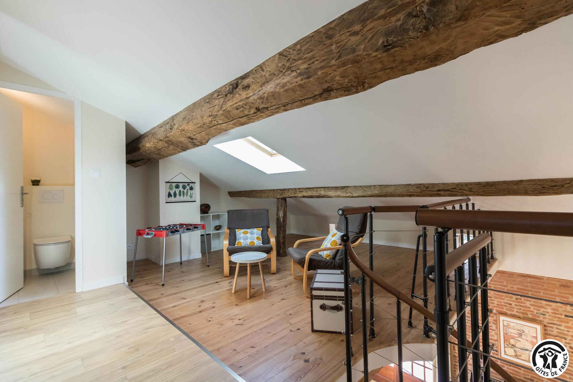 Mitoyen de la maison des propriétaires mais indépendant (terrasse et grand jardin privatif clos), le gîte Clorinde a tout pour vous séduire ! Lumineux, moderne, bien équipé, il a également su garder une trace de son passé avec ses murs de terre cuite ou crue. Une piscine clôturée commune sera l'atout décisif pour choisir ce lieu pour vos vacances d'été ! Jardin et terrasse privatifs clos. Après avoir visité Toulouse à 17km, vous pouvez vous relaxer aux centre de remise en forme de Calicéo à 12km ou choisir une journée lac détente à Caraman à 18km ! Château de Bonrepos-Riquet à 10km tout comme les commerces et restaurants. Natura Game à 13km. Lac du Laragou à 14km. Aux portes du département du Tarn : Lavaur à 24km, Gaillac à 56km, Albi à 70km et Cordes-sur-Ciel à 76km. Cette maison aménagée sur 2 niveaux avec 3 chambres et 4 lits : Au rez-de-chaussée : vaste pièce de séjour comportant une cuisine avec îlot central et coin-bar, et un espace séjour avec table à manger et salon. Une chambre (1 lit double en 140cm), salle d'eau/WC. A l'étage, accessible par un escalier en colimaçon : coin détente/lecture/jeux en mezzanine, 2 chambres mansardées (1 lit double en 140cm) (2 lits simples en 90cm), WC indépendant. Chauffage au sol en rez-de-chaussée (granules de bois) et convecteurs électriques à l'étage. Ouverture de la piscine de Mai à Septembre, horaires : 11h00 à 18h30.