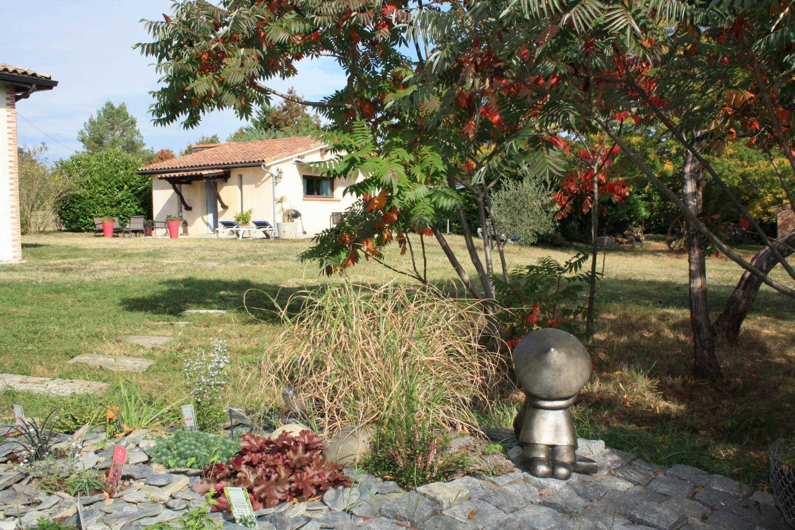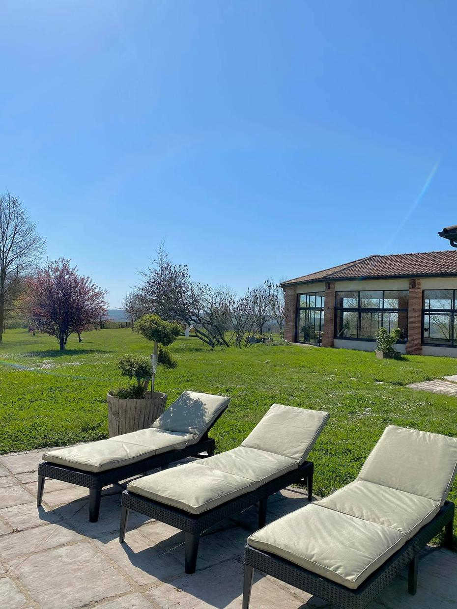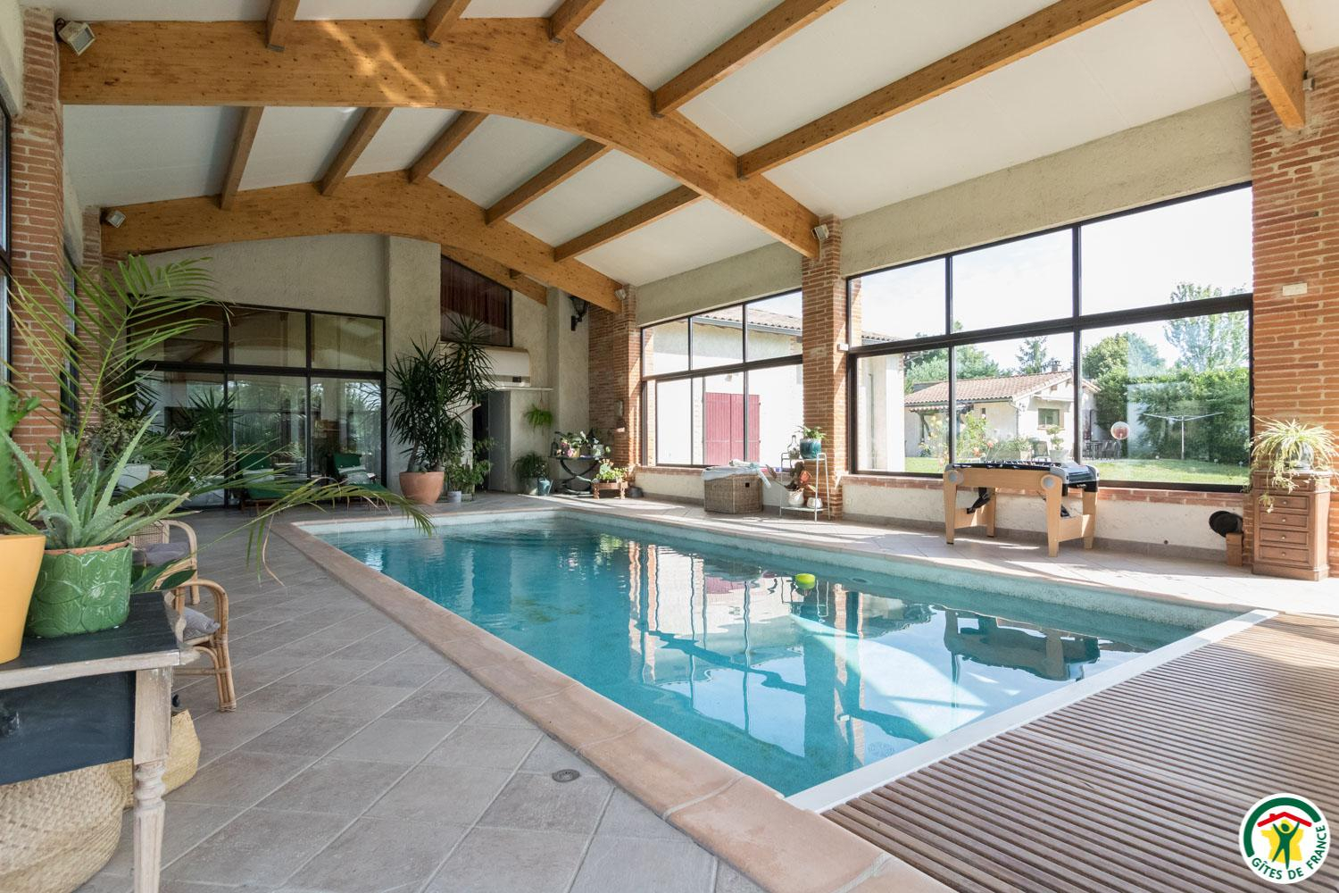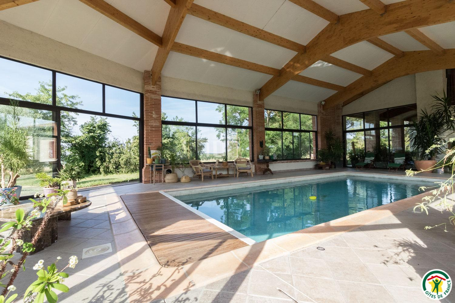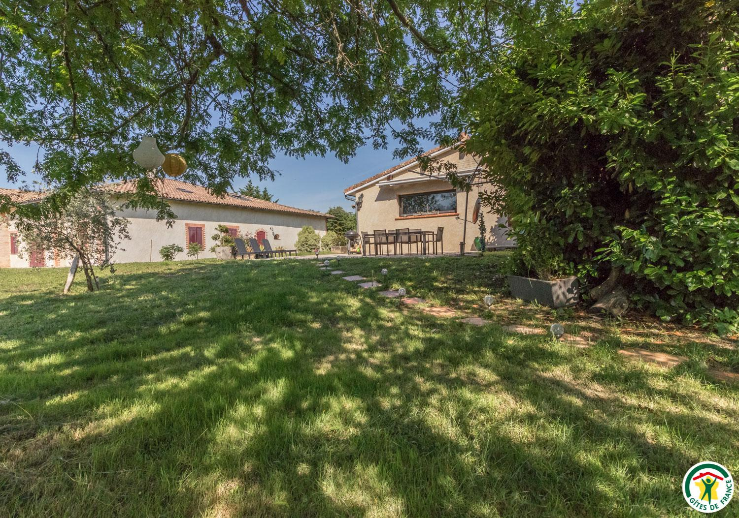 Ce gîte, aménagé dans une ancienne dépendance agricole, se situe à proximité de l'habitation des propriétaires, sur une propriété de 1,8 hectares clôturée. Sur un coteau, il bénéficie d'une vue imprenable côté Sud sur la région de Toulouse, les Pyrénées en toile de fond. On vous suggère d'aller vous régaler à la guinguette "La Gragnaguette" à 3km. Moment culture et patrimoine au Château de Bonrepos-Riquet (lieu d'invention du Canal du Midi) à 5km. De l'ombre et des balades à la Forêt de Buzet-sur-Tarn à 10km. Toulouse est à 20km, le Vignoble de Fronton à 27km et Albi à 58km. Gîte de plain pied : séjour avec cuisine américaine, 2 chambres dont une de 38 m2 (1 lit 2 personnes en 140cm) (1 lit 2 personnes en 180x200 modifiable en 2x90 + 1 lit 2 personnes en 140cm) avec chacune leur salle d'eau attenante, WC. Pour les enfants : DVD, jeux de société, livres. A l'extérieur : terrasse privative, aire de stationnement. Grand jardin. La piscine est commune avec les propriétaires.