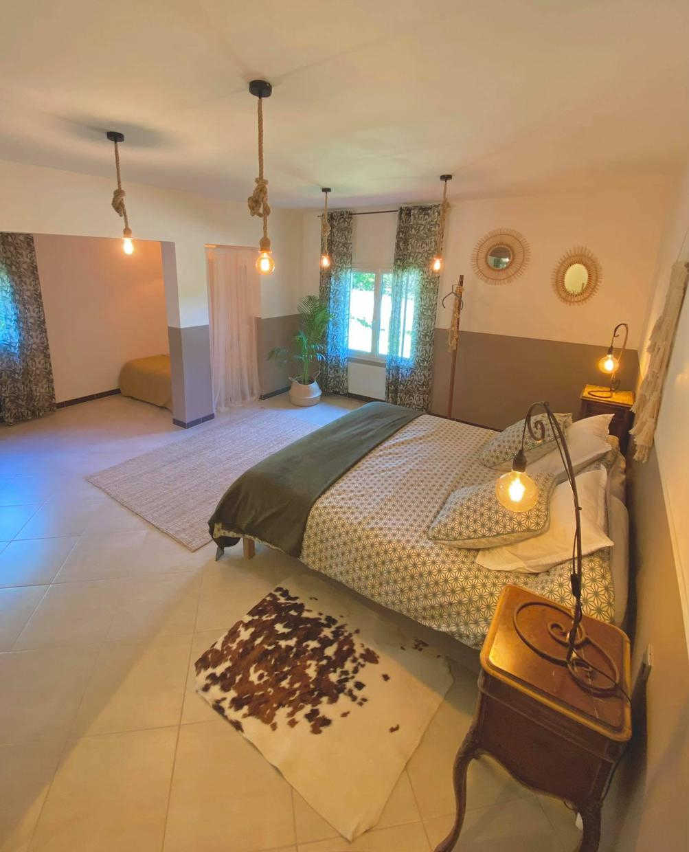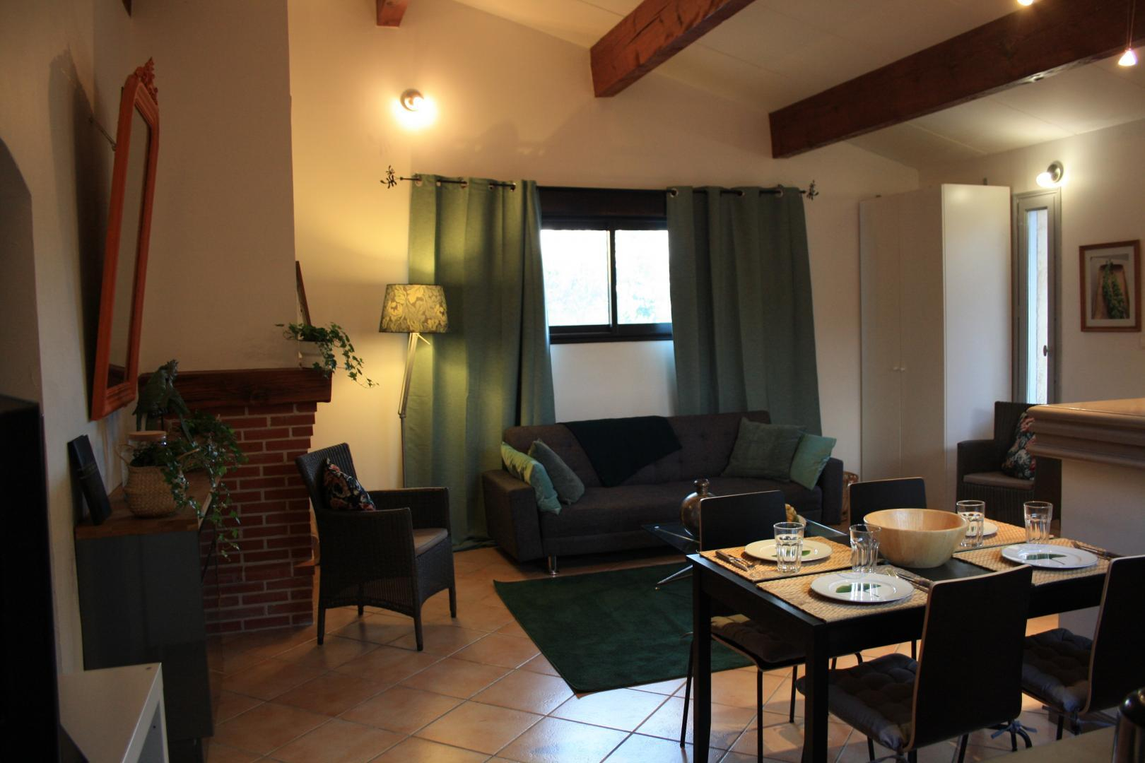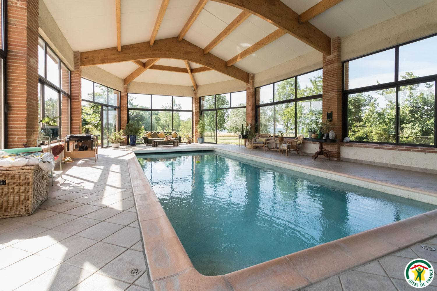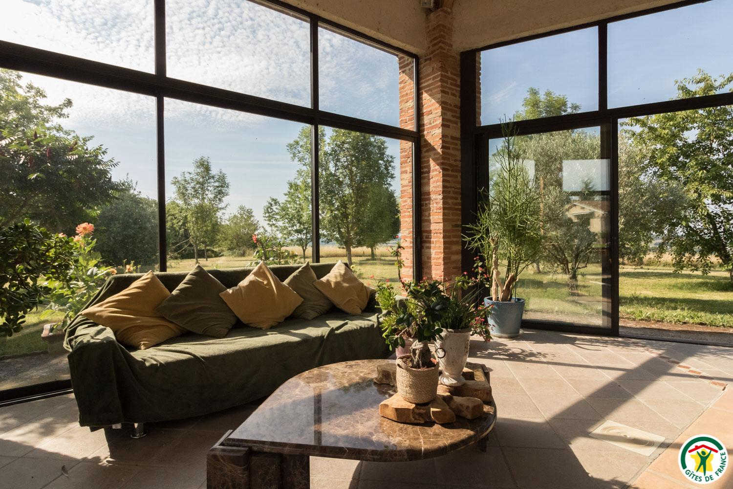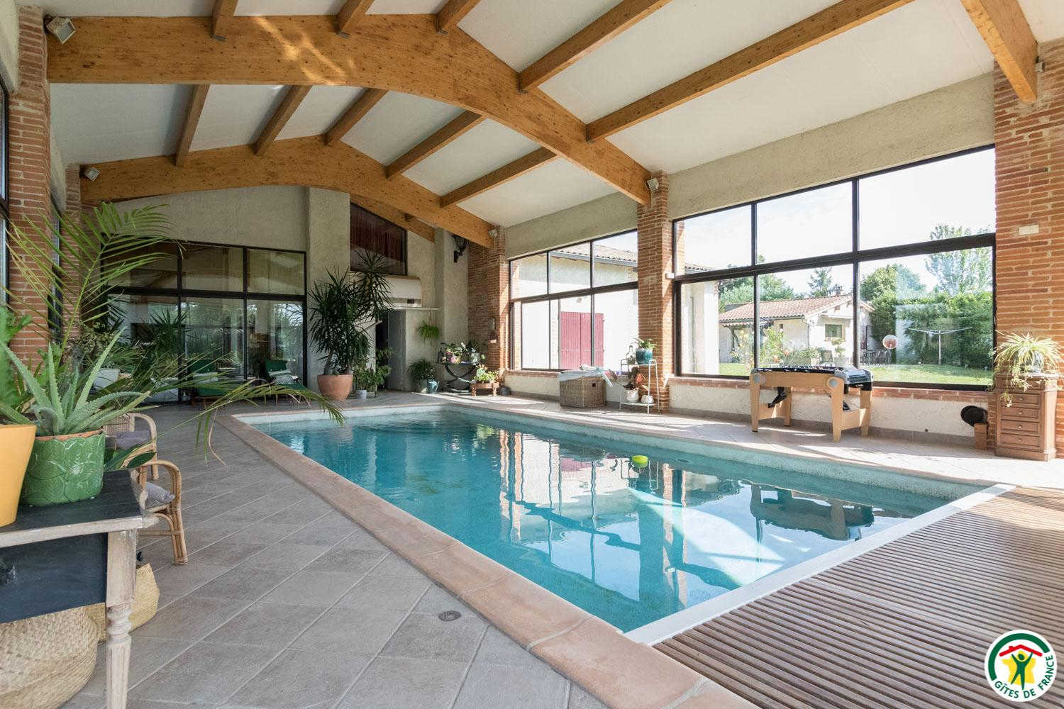 Ce gîte, aménagé dans une ancienne dépendance agricole, se situe à proximité de l'habitation des propriétaires, sur une propriété de 1,8 hectares clôturée. Sur un coteau, il bénéficie d'une vue imprenable côté Sud sur la région de Toulouse, les Pyrénées en toile de fond. On vous suggère d'aller vous régaler à la guinguette "La Gragnaguette" à 3km. Moment culture et patrimoine au Château de Bonrepos-Riquet (lieu d'invention du Canal du Midi) à 5km. De l'ombre et des balades à la Forêt de Buzet-sur-Tarn à 10km. Toulouse est à 20km, le Vignoble de Fronton à 27km et Albi à 58km. Gîte de plain pied : séjour avec cuisine américaine, 2 chambres dont une de 38 m2 (1 lit 2 personnes en 140cm) (1 lit 2 personnes en 180x200 modifiable en 2x90 + 1 lit 2 personnes en 140cm) avec chacune leur salle d'eau attenante, WC. Pour les enfants : DVD, jeux de société, livres. A l'extérieur : terrasse privative, aire de stationnement. Grand jardin. La piscine est commune avec les propriétaires.