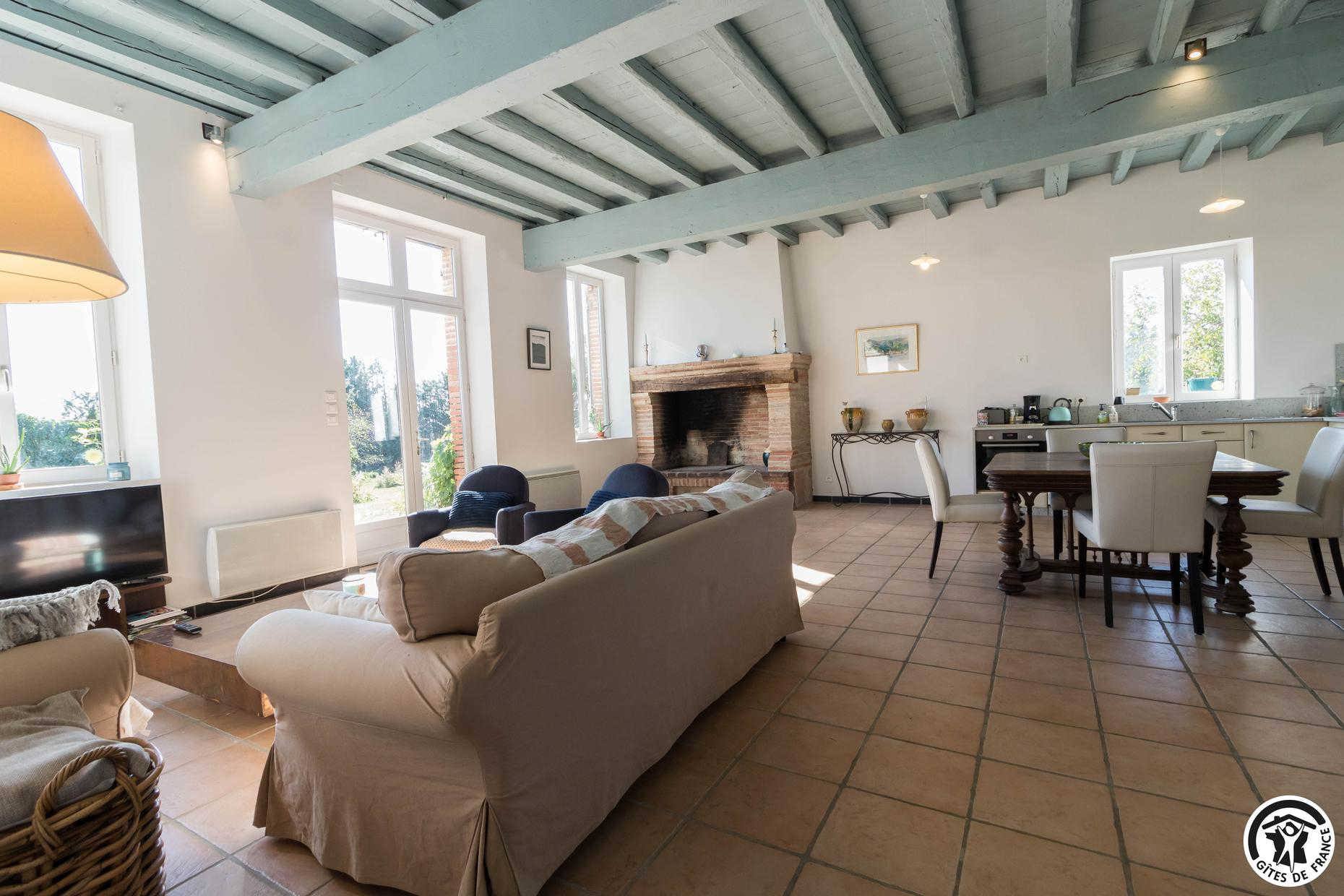 Une invitation au voyage dans le temps, à l'histoire et.... à des vacances reposantes ! Plongez dans l'historique incroyable de l'histoire du Château, détruit puis reconstruit au 16ème siècle. Du nom de ce bâtiment historique, c'est Jean De Jean, Procureur au Sénéchal de Toulouse en 1604, du temps de Capitouls de Toulouse, qui entreprit les premiers travaux, puis c'est un nouvel acquéreur, Jean Toulza, qui fonda notamment l'aile où se trouve le gîte. Marie-Paule et Jean-Jacques, les propriétaires, ont su redonner une vie à ce lieu chargé d'histoire, et vous offrent des vacances au Château ! Ils ont gardé les anciennes arcades, présentent désormais en haut de l'escalier de votre maison, ainsi que les briques et les poutres apparentes. Habillé avec des meubles de familles, c'est le lieu rêvé pour des vacances au frais ! Sur place, vous pourrez vous baigner dans la piscine et profiter de nombreux chemins de randonnées, à l'ombre, dans le parc. Vous serez aussi au coeur du vignoble du Fronton, le vin des Toulousains ! la Ville Rose, elle, est à 15km, le centre de remise en forme bien-être Calicéo est à 13km, le parc de loisirs Natura Game est à 8km, le Château de Bonrepos-Riquet (inventeur du Canal du Midi) est à 15km, la forêt et le golf de Buzet-sur-Tarn sont à 10km et Albi à 45km : de quoi vous occuper pendant vos vacances ! Gîte sur 2 niveaux : - Rez-de-chaussée : séjour (cheminée condamnée), cuisine, WC indépendant. - Premier étage : mezzanine (canapé lit et bibliothèque), 2 chambres avec chacune 1 lit double en 160*200cm, salle d'eau, WC indépendant. A l'extérieur, vous aurez accès à une terrasse privative avec salon de jardin, barbecue et salon de détente. La piscine est à partager avec les propriétaires, tout comme le parc.