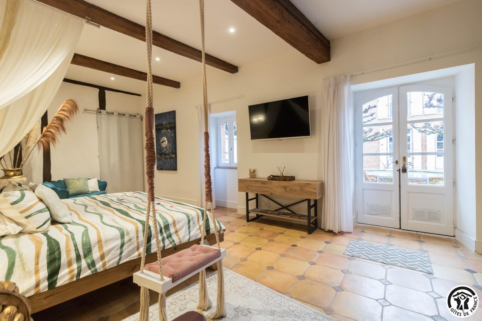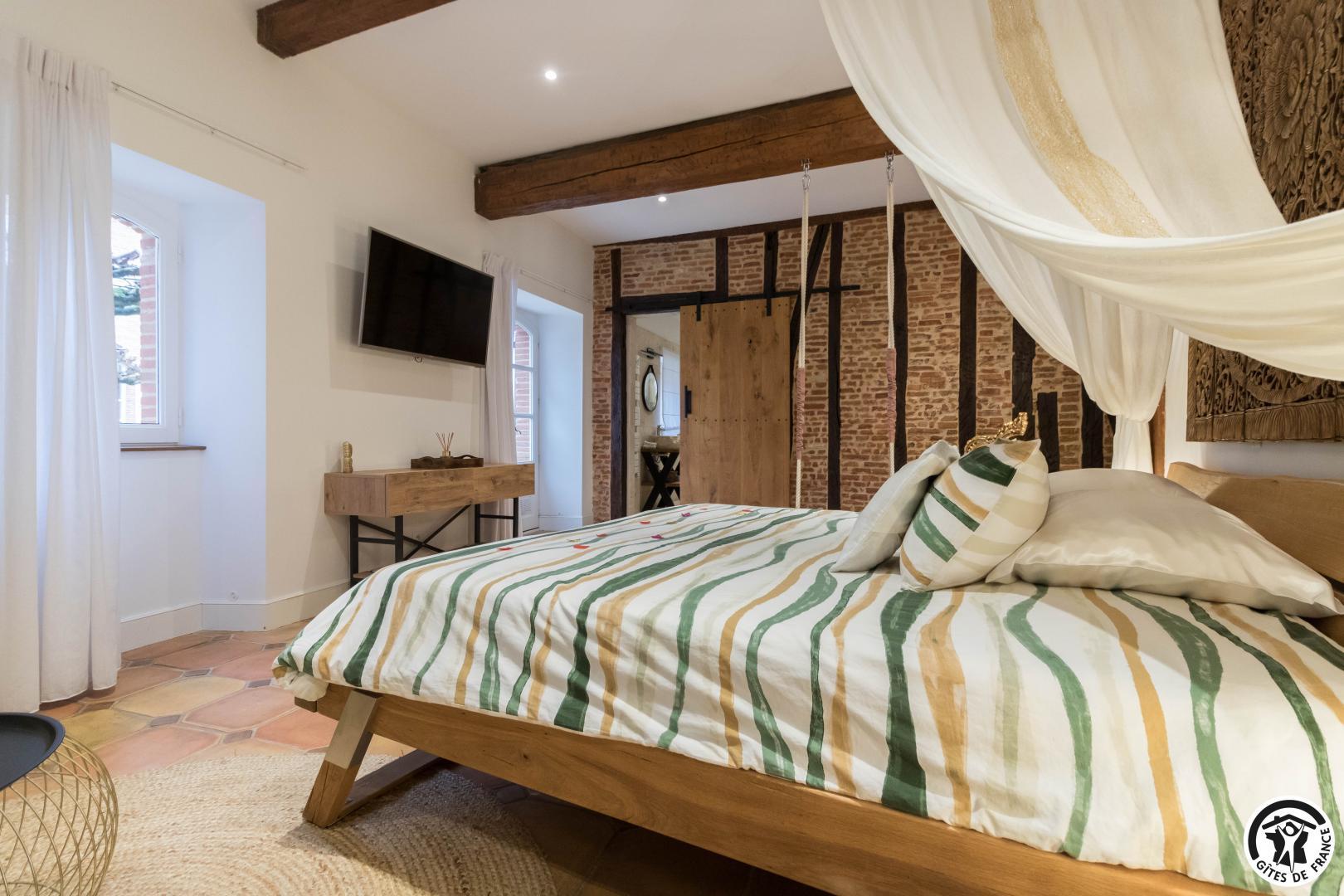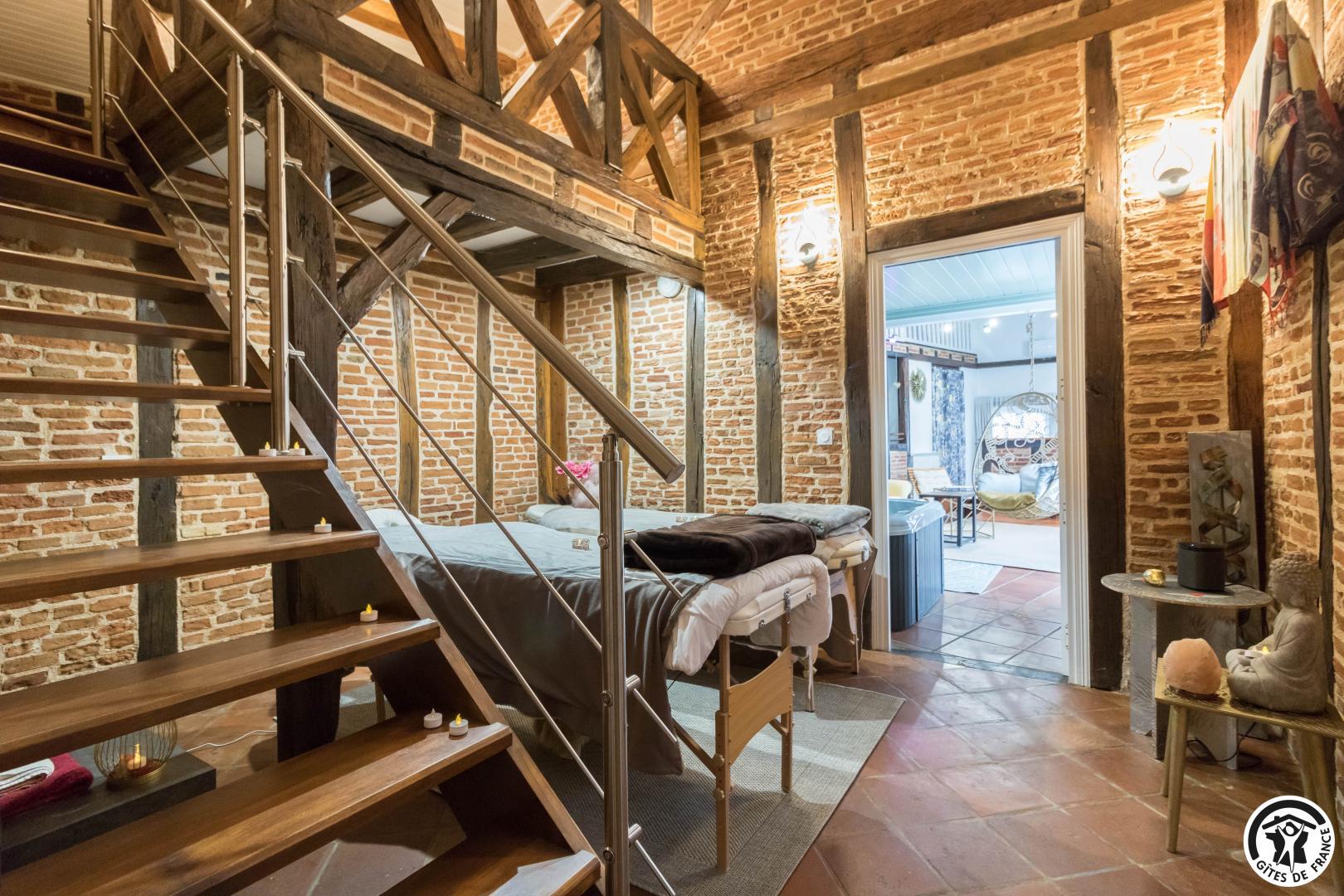Nichées au coeur de ce village de caractère, ancien fief cathare, la Suite n°5, la Suite n°7 et le Loft n°9 promettent bien plus qu'un séjour : une parenthèse rare entre patrimoine toulousain et ses briques et poutres apparentes, douceur de vivre et prestations 5 épis absolument remarquables. - La Suite n°5 : entrée par le patio, lit en 200*200cm, vous revivrez le tableau de la Balançoire de Fragonard, - La Suite n°7 : entrée indépendante depuis la rue, lit en 180*200cmc'est la promesse du séjour romantique parfait, Les 2 suites se partagent une salle de massage, accessible dans la maison, en passant par le patio. - Le Loft n°9 : lui aussi avec son entrée indépendante et son lit en 180*200cm (en mezzanine), est idéal pour des séjours plus long par sa cuisine bien équipée. Il est à l'étage et possède un accès direct à la salle des massages. Aux beaux jours, vous aurez la possibilité de profiter d'un billard américain, avant d'accéder à une piscine (8*4m) commune dans un jardin clos. Chaque hébergement dispose de son jacuzzi privatif, véritable invitation à la détente après une journée de découvertes ou de travail. Le luxe se prolonge dans l'accueil personnalisé de Marie, la propriétaire, reconnue pour son art de recevoir : petits déjeuners gourmands aux produits locaux, repas savoureux sur demande et massages relaxants, parfaits pour sublimer un séjour à deux ou décompresser après une journée professionnelle. Séjourner ici, c'est aussi rayonner facilement vers les trésors touristiques de l'est toulousain. À proximité immédiate de Verfeil, les vacanciers pourront découvrir Toulouse et sa place du Capitole à seulement 20 km, flâner le long du canal du Midi à environ 18 km, rejoindre la cité épiscopale d'Albi classée à l'UNESCO à 45 km et explorer les bastides du Lauragais comme Revel à 25 km. Attention, cet ancien presbytère du 15ème siècle est mitoyen de l'église (pas de cloches entre 22h et 7h).