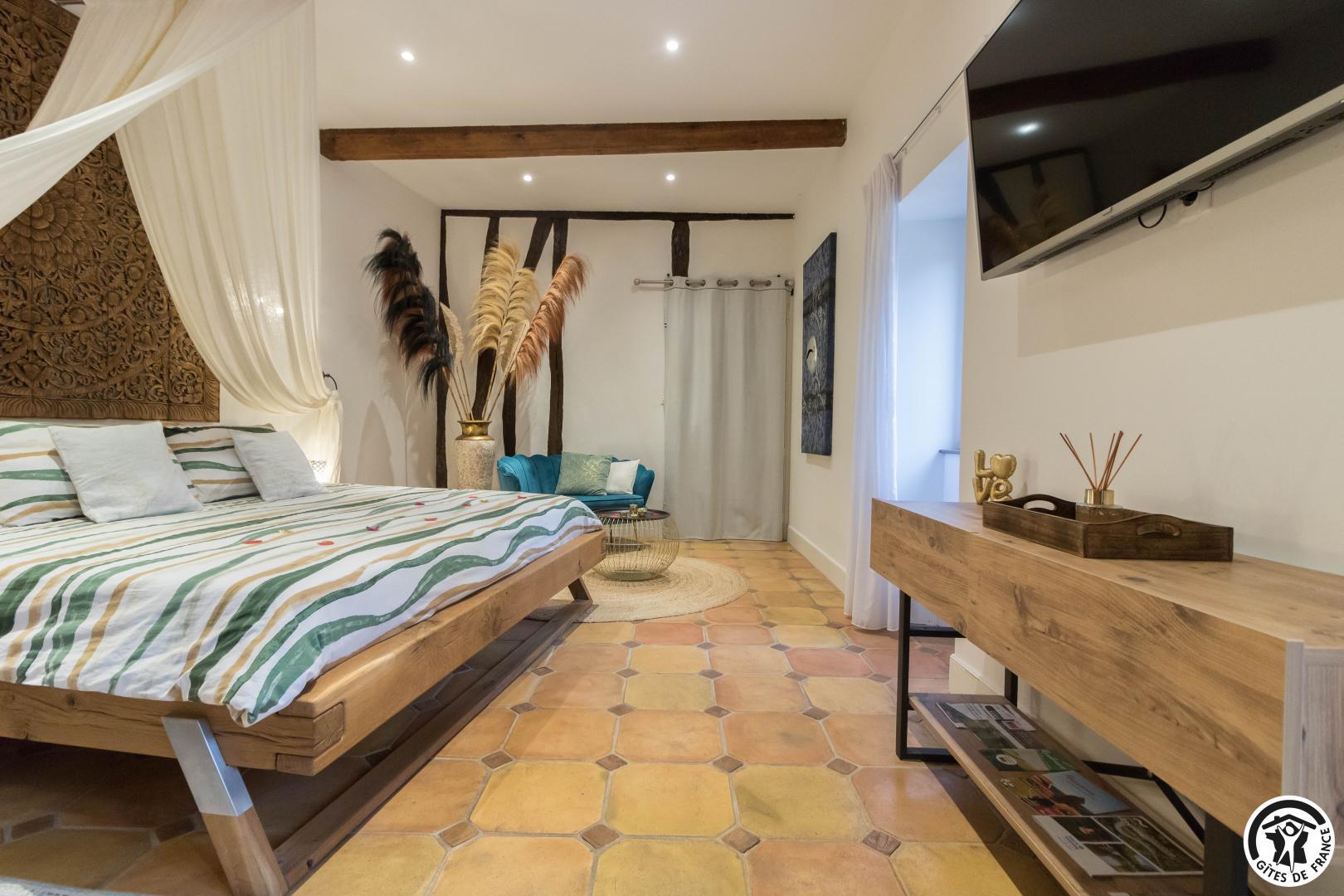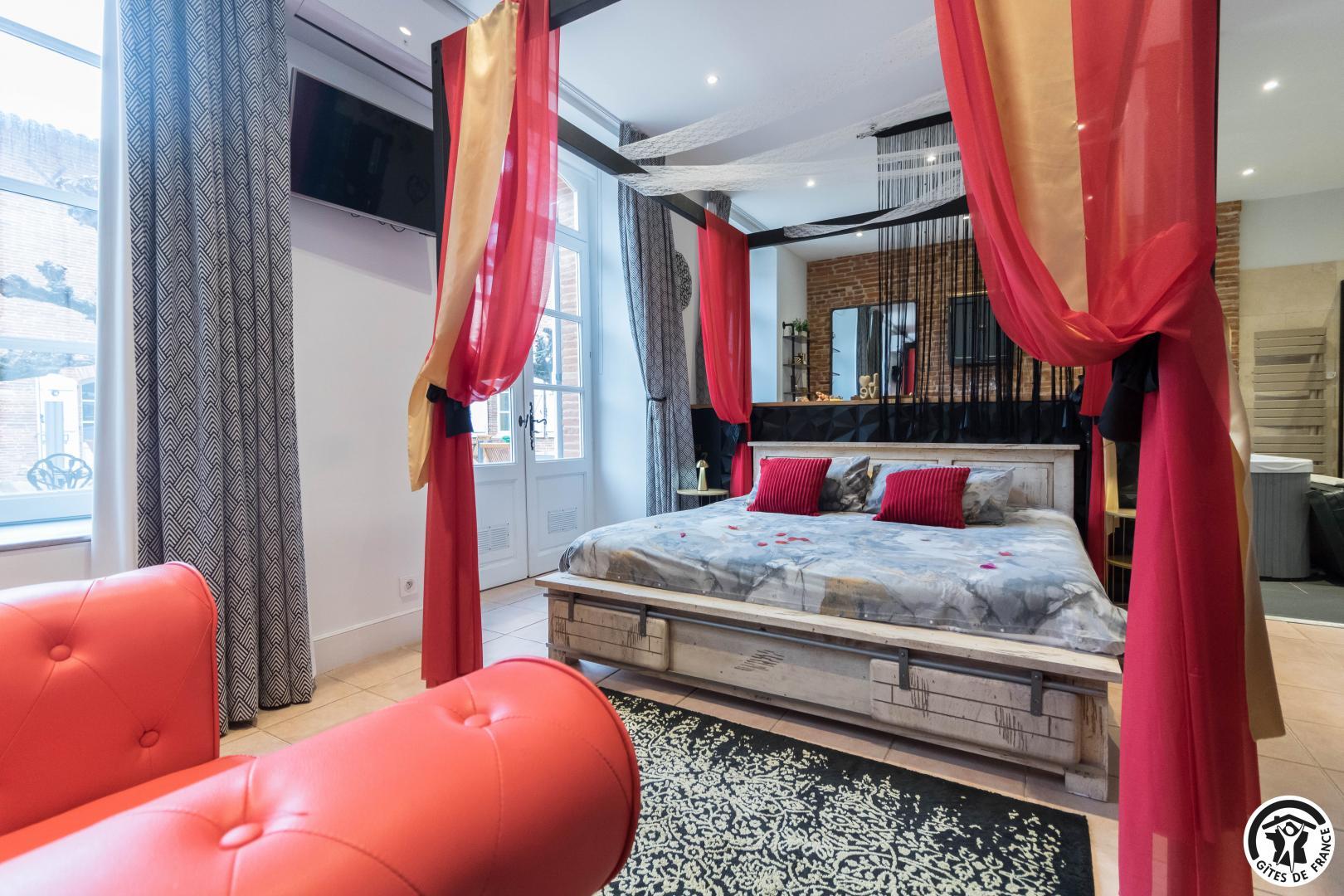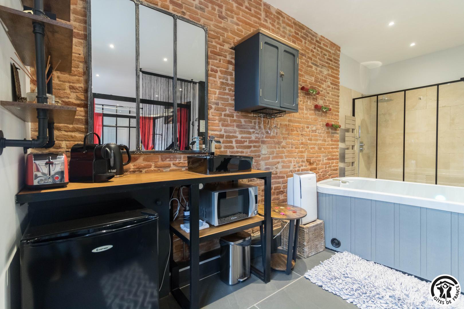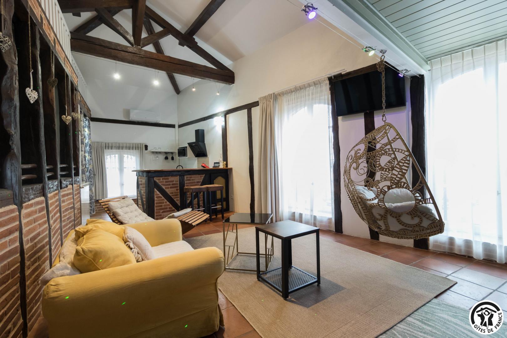 Nichées au coeur de ce village de caractère, ancien fief cathare, la Suite n°5, la Suite n°7 et le Loft n°9 promettent bien plus qu'un séjour : une parenthèse rare entre patrimoine toulousain et ses briques et poutres apparentes, douceur de vivre et prestations 5 épis absolument remarquables. - La Suite n°5 : entrée par le patio, lit en 200*200cm, vous revivrez le tableau de la Balançoire de Fragonard, - La Suite n°7 : entrée indépendante depuis la rue, lit en 180*200cmc'est la promesse du séjour romantique parfait, Les 2 suites se partagent une salle de massage, accessible dans la maison, en passant par le patio. - Le Loft n°9 : lui aussi avec son entrée indépendante et son lit en 180*200cm (en mezzanine), est idéal pour des séjours plus long par sa cuisine bien équipée. Il est à l'étage et possède un accès direct à la salle des massages. Aux beaux jours, vous aurez la possibilité de profiter d'un billard américain, avant d'accéder à une piscine (8*4m) commune dans un jardin clos. Chaque hébergement dispose de son jacuzzi privatif, véritable invitation à la détente après une journée de découvertes ou de travail. Le luxe se prolonge dans l'accueil personnalisé de Marie, la propriétaire, reconnue pour son art de recevoir : petits déjeuners gourmands aux produits locaux, repas savoureux sur demande et massages relaxants, parfaits pour sublimer un séjour à deux ou décompresser après une journée professionnelle. Séjourner ici, c'est aussi rayonner facilement vers les trésors touristiques de l'est toulousain. À proximité immédiate de Verfeil, les vacanciers pourront découvrir Toulouse et sa place du Capitole à seulement 20 km, flâner le long du canal du Midi à environ 18 km, rejoindre la cité épiscopale d'Albi classée à l'UNESCO à 45 km et explorer les bastides du Lauragais comme Revel à 25 km. Attention, cet ancien presbytère du 15ème siècle est mitoyen de l'église (pas de cloches entre 22h et 7h).