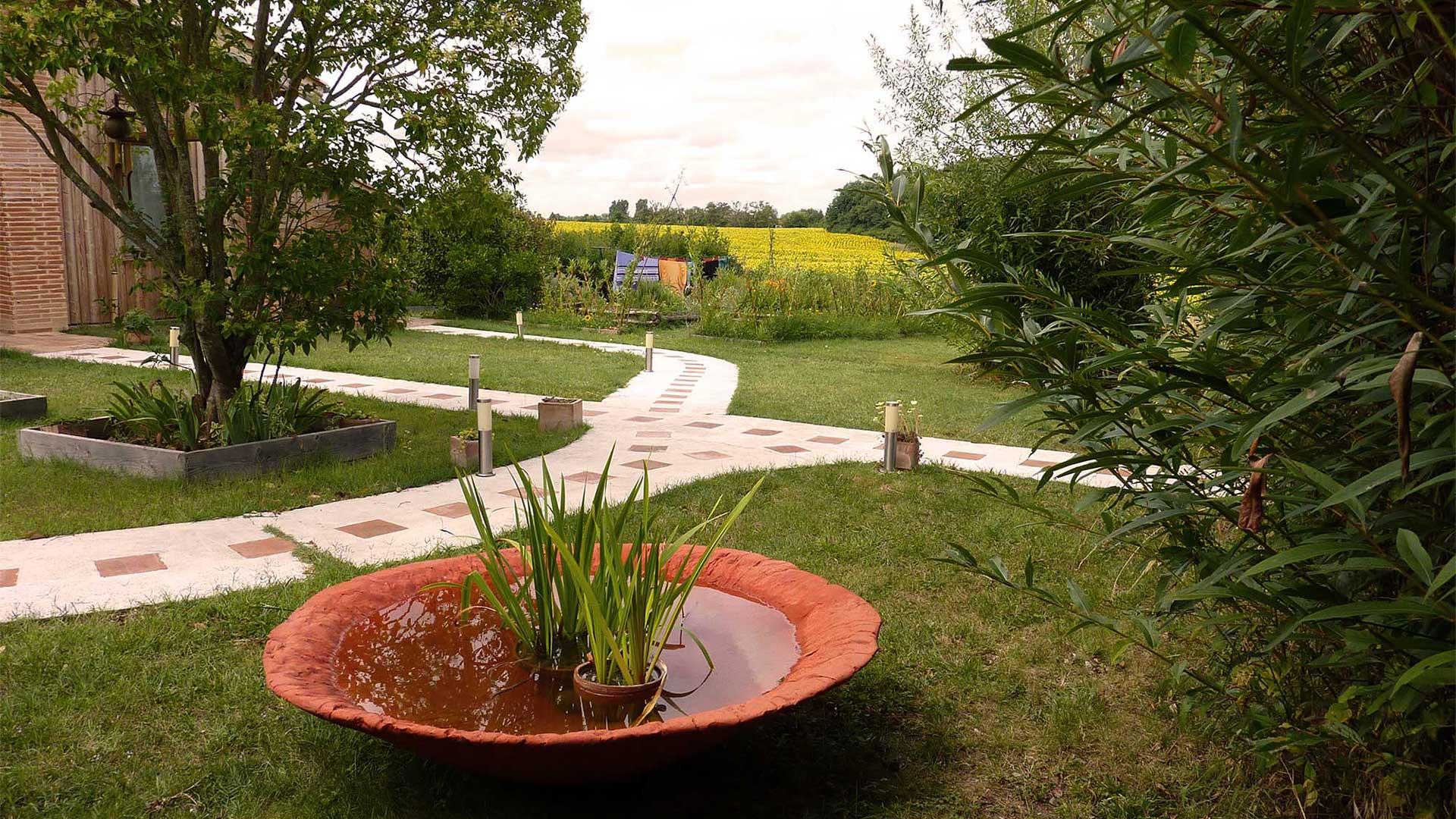 ECO GÎTE mitoyen d'un autre gîte aux portes de Toulouse. En famille pour vos vacances écologiques ou prestations sur-mesure entre collègues pour vous ressourcer à 17km de Toulouse après une journée de travail… A DÉCOUVRIR : Albi (50mns de voiture), et à 4km du château de Bonrepos Riquet (inventeur du Canal du Midi) et 10km des thermes de Calicéo ! Parc d'accrobranches de Natura Game 6km. Lac du Laragou 10km (voile, balades, guinguette). Forêt de Buzet-sur-Tarn (balades, champignons, golf) à 18km. Gaillac 44km et Cordes-sur-Ciel 69km (département du Tarn). AGENCEMENT : rez-de-chaussée : entrée sur séjour avec coin-cuisine et coin-salon, 1 chambre (2 lits simples en 90cm ou jumelés) avec mezzanine aménagée, salle d'eau et wc privatifs. Étage : 1 chambre (1 lit double en 140cm) salle d'eau et wc privatifs. Lave-linge, sèche-linge, vélos communs aux 2 gîtes. EXTÉRIEUR : terrasse privative, barbecue individuel, plancha, jardin arboré et parking en commun aux 2 gîtes. GESTION DE L'ÉNERGIE et respect de l'environnement : Un puits provençal, l'ombrage des façades et ventilation naturelle nocturne permettent de maintenir une température agréable en été. Chauffage au bois et solaire collectif en hiver, entrée d'air tempéré en hiver par le puits provençal. TÉLÉTRAVAIL : mise à disposition d'un bureau (dans une chambre), d'une lampe, proximité d'une prise électrique pour le branchement d'un ordinateur portable, rallonge et multiprise sur demande, connexion Internet haut débit Wifi. Couverture téléphonique 4G (opérateur : Orange et Free). ACTIVITÉS : possibilité de participer à des ateliers collectifs autour des plantes médicinales. Cueillette fruits et légumes selon la production. A SAVOIR : pour vos longs séjours de plus de 3 semaines consécutives, réduction de 25% sur le tarif saisonnier sauf en très haute-saison. Ouvert toute l'année et très flexible sur les jours d'arrivée