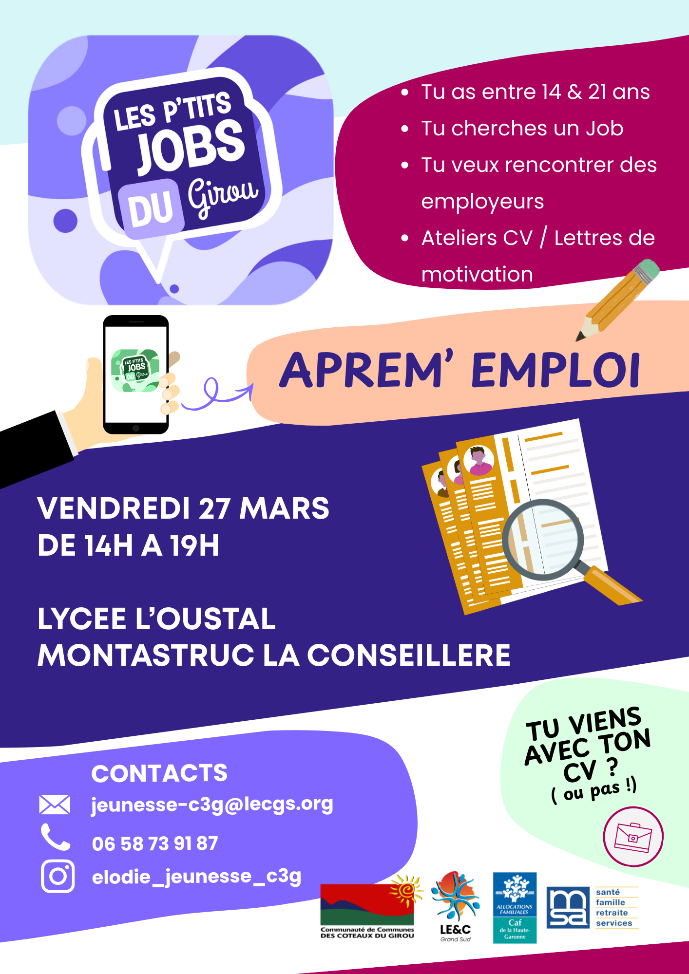 Dans ce cadre, un Forum « Les P’tits Jobs du Girou » est organisé afin de favoriser les rencontres entre jeunes, entreprises et acteurs locaux :