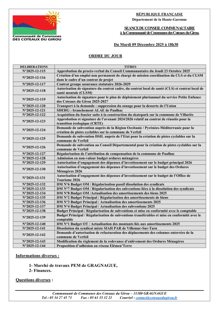 A la Communauté de Communes des Coteaux du Girou, 1 rue du Girou, 31380 GRAGNAGUE
