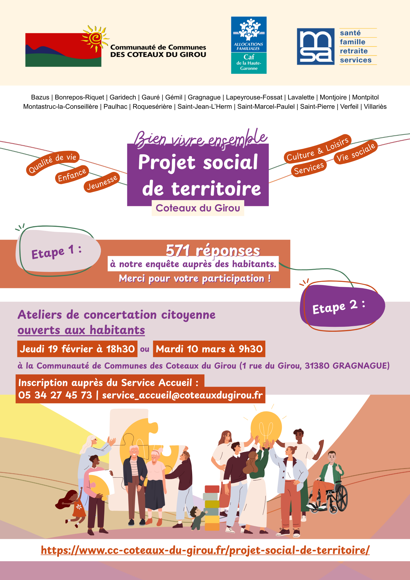 La Communauté des Communes des Coteaux du Girou (C3G) s’est engagée dans une démarche de co-construction de son projet social de territoire en partenariat avec la CAF et la MSA de la Haute Garonne et l’ensemble des acteurs du territoire.