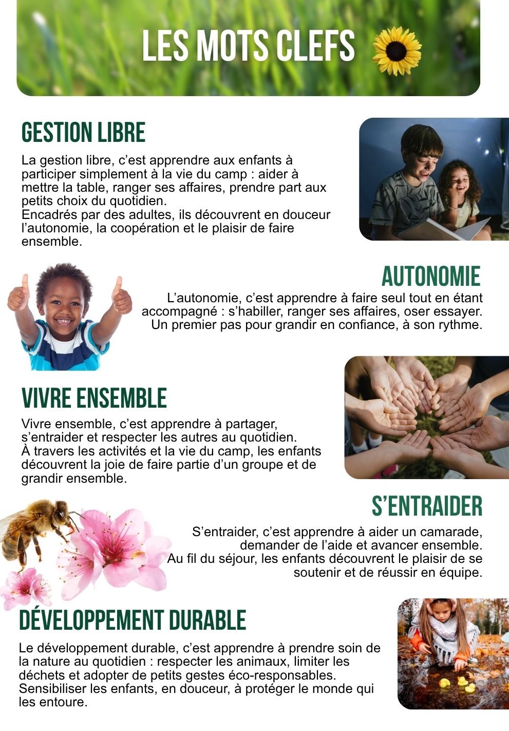 Sur le thème de la nature et du vivre ensemble, une expérience ludique et enrichissante, alliant aventure, apprentissage et respect de l’environnement.