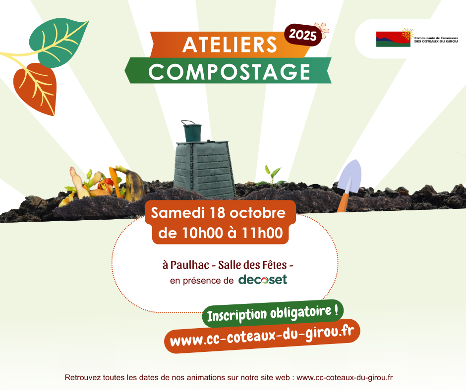 Fort de ses connaissances sur le compostage et souhaitant pérenniser cette pratique sur tout le territoire des Coteaux du Girou, le Service Environnement propose aux habitants des Coteaux du Girou de participer à un atelier compostage !